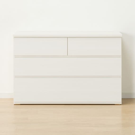 ワイシャツやカットソーなどの収納にちょうど良い深さ。別売のキャスターを使えば移動も楽。リーズナブルかつ機能的なチェストを求める方にぴったりです。
