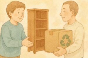 地域の掲示板サービスやジモティーのようなプラットフォームでは、「取りに来てくれる方限定で0円譲渡」といった形で本棚を手放す例も見られます。引き取り条件や日時を明確にし、搬出方法について事前にすり合わせておくことで、トラブルを避けながらスムーズに引き渡しやすくなります。