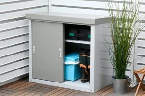 収納庫は、比較的コンパクトで、ベランダの隙間に収めやすいサイズが多いです。上開きや片開きなど種類があり、ゴミの一時保管や、掃除用品の収納など、日常使いに適しています。ただし、容量が限られるため、詰め込みすぎると扉の開閉や防水性に影響が出やすくなります。