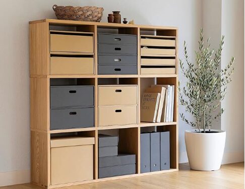 同シリーズは、住空間になじむ基準寸法に合わせたモジュール設計が採用されています。代表的な基準として、約37cmや約26cmといった単位が各種収納用品に通底し、同社のケース類を組み合わせたときに無駄なく収まる前提で設計されています。